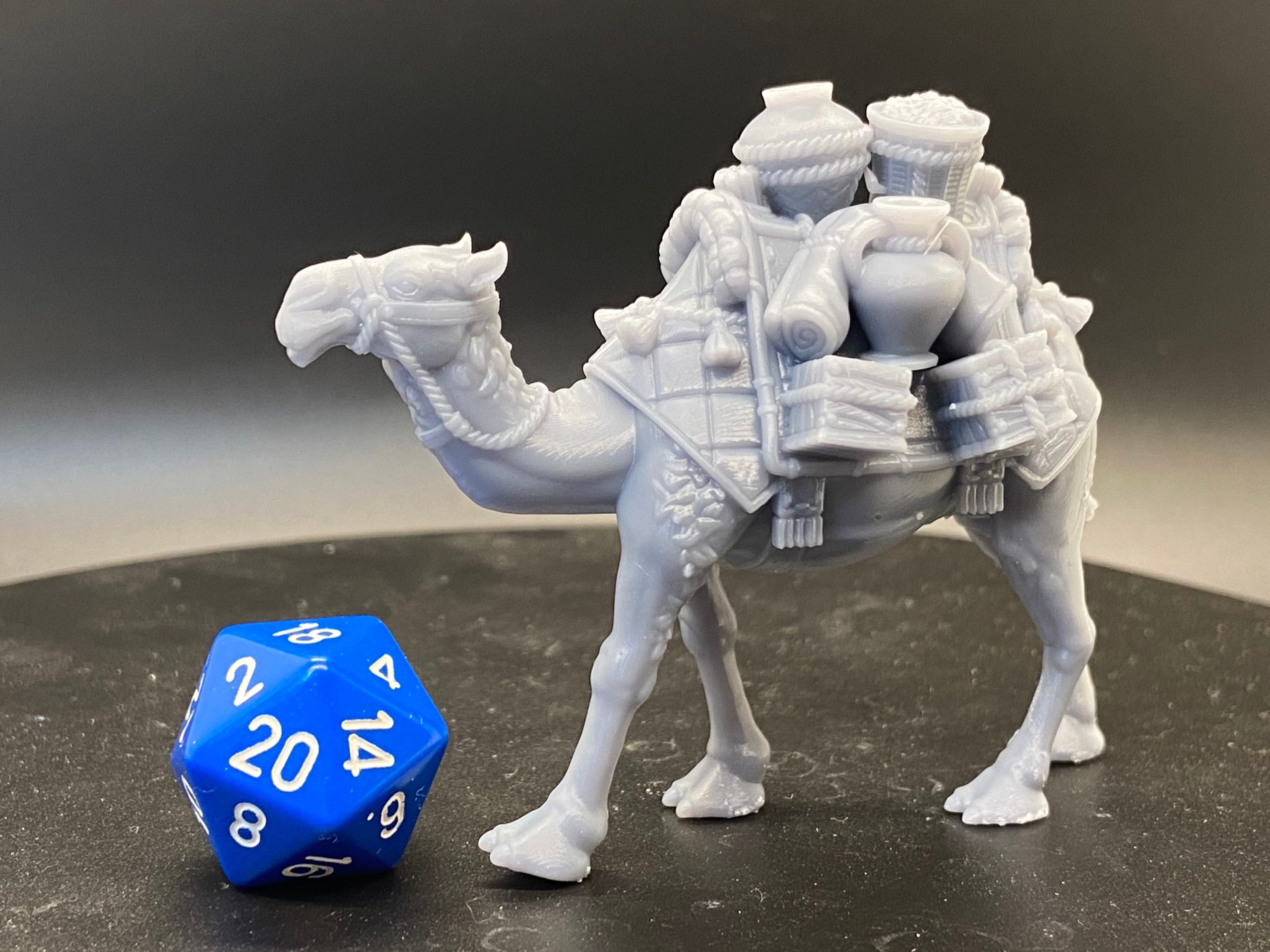 All resin prints are produced on an Elegoo Jupiter (6K resolution) and multiple Elegoo Saturn machines (4K resolution). The d20 shown is not included and is used for scale reference only.