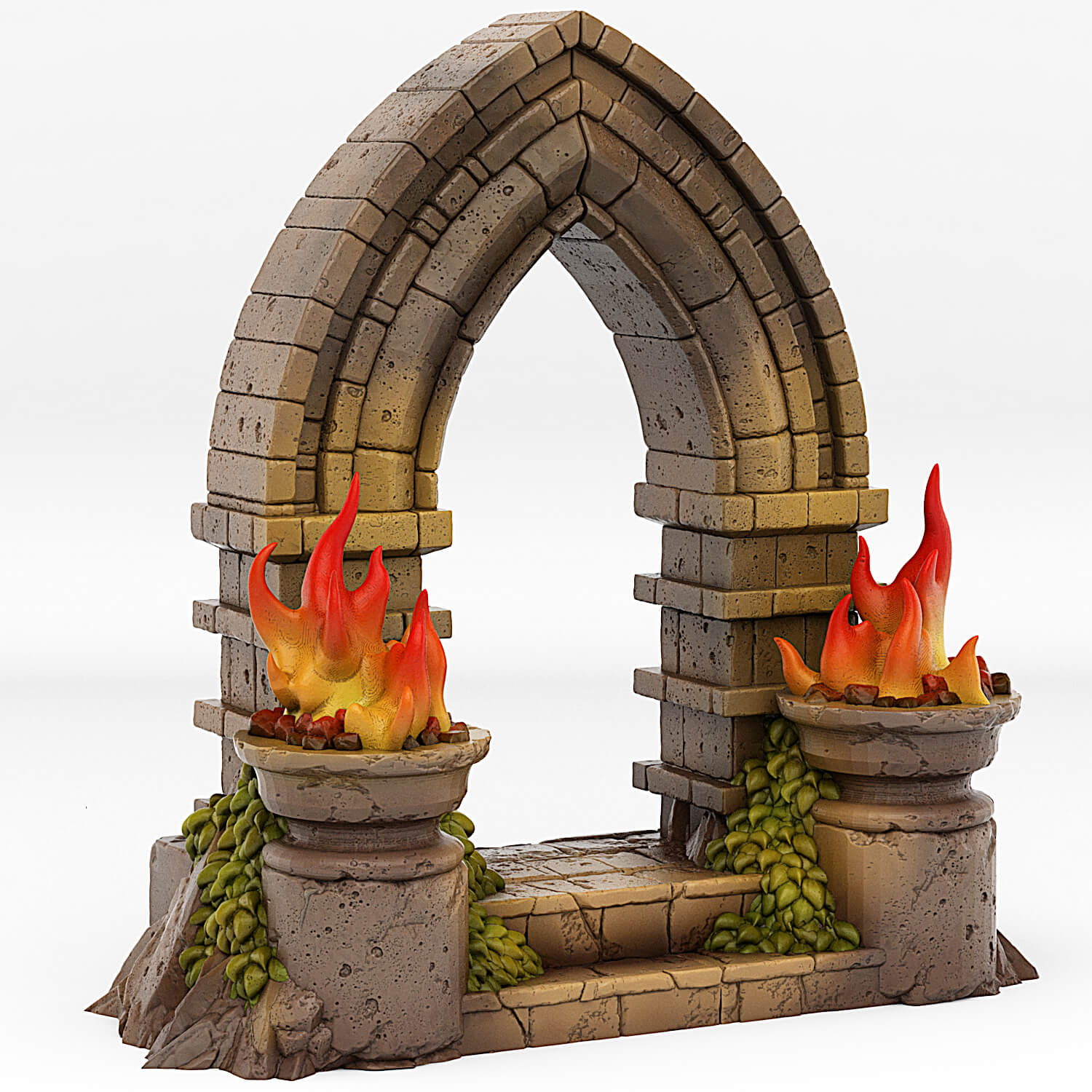 This portal (along with the others in the core set and stretch goals) is a two-part print in beige filament, with the transparent effects produced in translucent colored resin. All miniatures are supplied unpainted and unassembled.